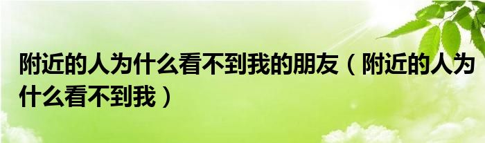 大家好,小育来为大家讲解下。附近的人为什么看不到我的朋友,附近的人为什么看不到我很多人还不知道,现在让我们一起来看看吧!
