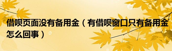大家好,小育来为大家讲解下。借呗页面没有备用金,有借呗窗口只有备用金怎么回事很多人还不知道,现在让我们一起来看看吧!
