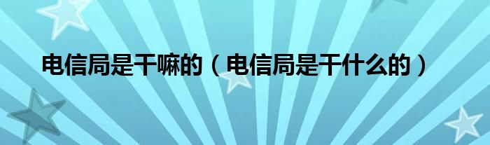 大家好,小育来为大家讲解下。电信局是干嘛的,电信局是干什么的很多人还不知道,现在让我们一起来看看吧!