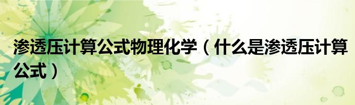 大家好,小育来为大家讲解下。渗透压计算公式物理化学,什么是渗透压计算公式很多人还不知道,现在让我们一起来看看吧!