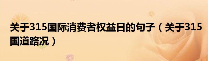 大家好,小育来为大家讲解下。关于315国际消费者权益日的句子,关于315国道路况很多人还不知道,现在让我们一起来看看吧!