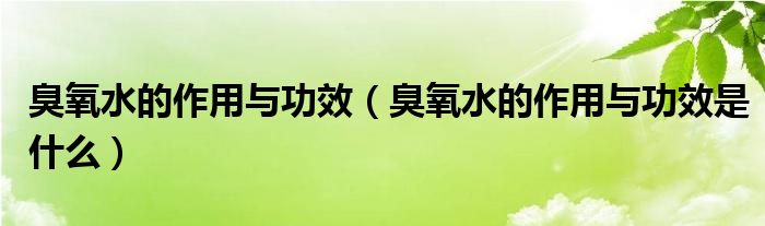 大家好,伊人来为大家解答以上问题。臭氧水的作用与功效,臭氧水的作用与功效是什么很多人还不知道,现在让我们一起来看看吧!