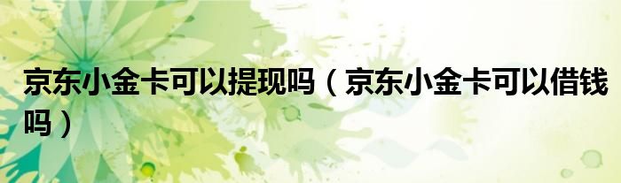 大家好,小育来为大家讲解下。京东小金卡可以提现吗,京东小金卡可以借钱吗很多人还不知道,现在让我们一起来看看吧!