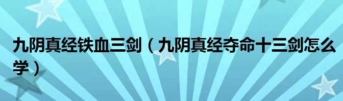 大家好,小育来为大家讲解下。九阴真经铁血三剑,九阴真经夺命十三剑怎么学很多人还不知道,现在让我们一起来看看吧!