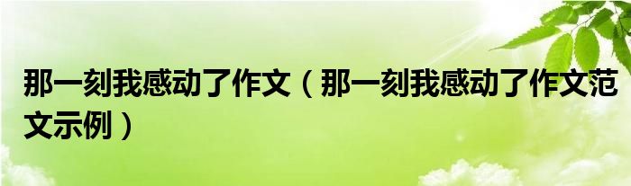 大家好,伊人来为大家解答以上问题。那一刻我感动了作文,那一刻我感动了作文范文示例很多人还不知道,现在让我们一起来看看吧!