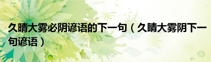 1、下一句是:长雨大雾会放晴。“长期晴雾会多云,长期雨雾会晴。”这是一句气象谚语,意思是长时间的晴天后会阴天,多阴天后一场大雾后会晴。它反映了天气的变化规律。