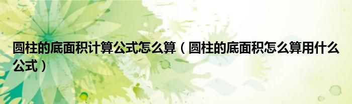 大家好,小育来为大家讲解下。圆柱的底面积计算公式怎么算,圆柱的底面积怎么算用什么公式很多人还不知道,现在让我们一起来看看吧!