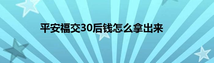 大家好,小育来为大家讲解下。平安福交30后钱怎么拿出来很多人还不知道,现在让我们一起来看看吧!