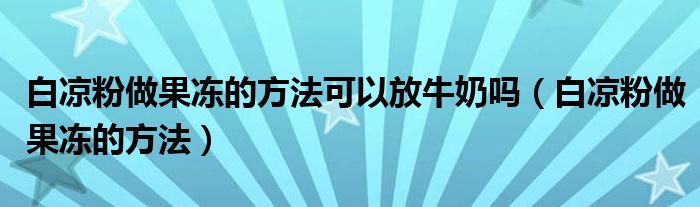 大家好,小育来为大家讲解下。白凉粉做果冻的方法可以放牛奶吗,白凉粉做果冻的方法很多人还不知道,现在让我们一起来看看吧!