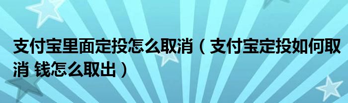 大家好,小育来为大家讲解下。支付宝里面定投怎么取消,支付宝定投如何取消 钱怎么取出很多人还不知道,现在让我们一起来看看吧!