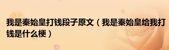 大家好,小育来为大家讲解下。我是秦始皇打钱段子原文,我是秦始皇给我打钱是什么梗很多人还不知道,现在让我们一起来看看吧!