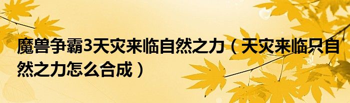 大家好,小育来为大家讲解下。魔兽争霸3天灾来临自然之力,天灾来临只自然之力怎么合成很多人还不知道,现在让我们一起来看看吧!