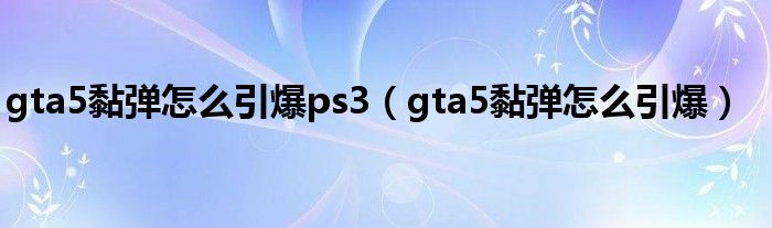 大家好,小育来为大家讲解下。gta5黏弹怎么引爆ps3,gta5黏弹怎么引爆很多人还不知道,现在让我们一起来看看吧!