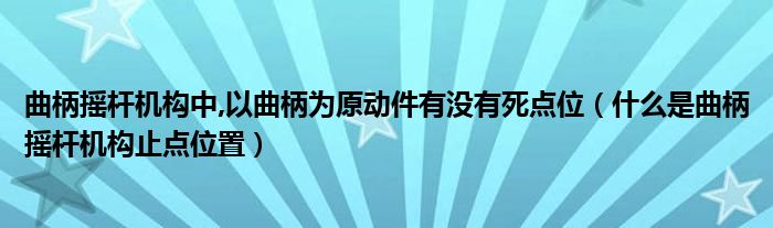 大家好,小育来为大家讲解下。曲柄摇杆机构中,以曲柄为原动件有没有死点位,什么是曲柄摇杆机构止点位置很多人还不知道,现在让我们一起来看看吧!