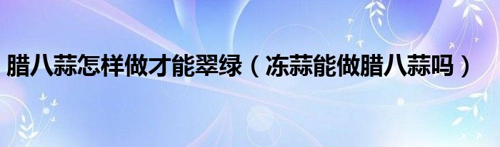 大家好,小育来为大家讲解下。腊八蒜怎样做才能翠绿,冻蒜能做腊八蒜吗很多人还不知道,现在让我们一起来看看吧!