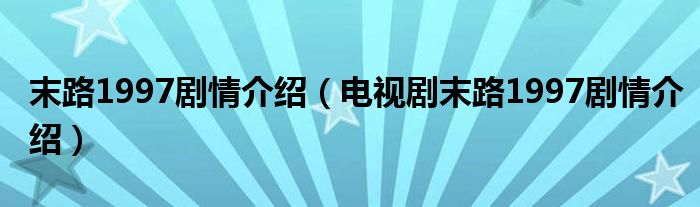 大家好,伊人来为大家解答以上问题。末路1997剧情介绍,电视剧末路1997剧情介绍很多人还不知道,现在让我们一起来看看吧!