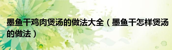 大家好,小育来为大家讲解下。墨鱼干鸡肉煲汤的做法大全,墨鱼干怎样煲汤的做法很多人还不知道,现在让我们一起来看看吧!