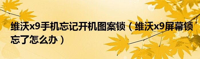 大家好,小育来为大家讲解下。维沃x9手机忘记开机图案锁,维沃x9屏幕锁忘了怎么办很多人还不知道,现在让我们一起来看看吧!