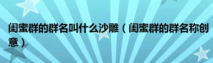 大家好,小育来为大家讲解下。闺蜜群的群名叫什么沙雕,闺蜜群的群名称创意很多人还不知道,现在让我们一起来看看吧!