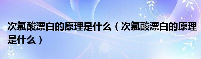 大家好,小育来为大家讲解下。次氯酸漂白的原理是什么,次氯酸漂白的原理是什么很多人还不知道,现在让我们一起来看看吧!