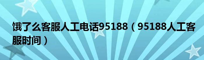 大家好,小育来为大家讲解下。饿了么客服人工电话95188,95188人工客服时间很多人还不知道,现在让我们一起来看看吧!
