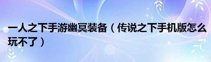 大家好,小育来为大家讲解下。一人之下手游幽冥装备,传说之下手机版怎么玩不了很多人还不知道,现在让我们一起来看看吧!