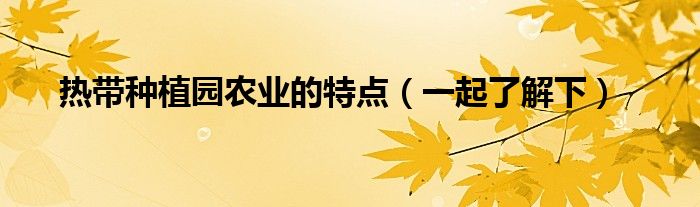 大家好,伊人来为大家解答以上问题。热带种植园农业的特点,一起了解下很多人还不知道,现在让我们一起来看看吧!