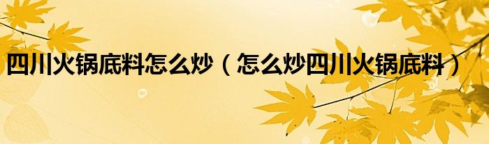 大家好,伊人来为大家解答以上问题。四川火锅底料怎么炒,怎么炒四川火锅底料很多人还不知道,现在让我们一起来看看吧!