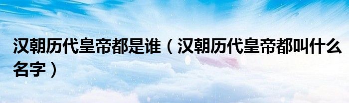 大家好,伊人来为大家解答以上问题。汉朝历代皇帝都是谁,汉朝历代皇帝都叫什么名字很多人还不知道,现在让我们一起来看看吧!