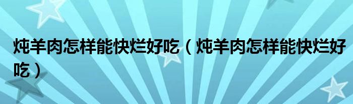 大家好,小育来为大家讲解下。炖羊肉怎样能快烂好吃,炖羊肉怎样能快烂好吃很多人还不知道,现在让我们一起来看看吧!