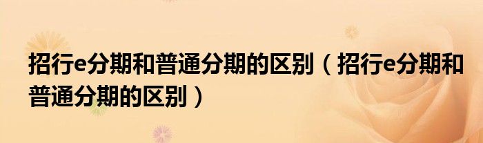 大家好,小育来为大家讲解下。招行e分期和普通分期的区别,招行e分期和普通分期的区别很多人还不知道,现在让我们一起来看看吧!