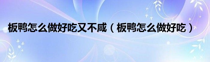 大家好,小育来为大家讲解下。板鸭怎么做好吃又不咸,板鸭怎么做好吃很多人还不知道,现在让我们一起来看看吧!