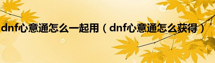 大家好,小育来为大家讲解下。dnf心意通怎么一起用,dnf心意通怎么获得很多人还不知道,现在让我们一起来看看吧!