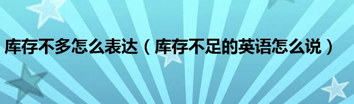 大家好,伊人来为大家解答以上问题。库存不多怎么表达,库存不足的英语怎么说很多人还不知道,现在让我们一起来看看吧!