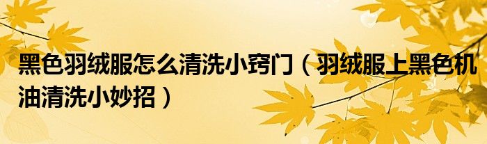 大家好,小育来为大家讲解下。黑色羽绒服怎么清洗小窍门,羽绒服上黑色机油清洗小妙招很多人还不知道,现在让我们一起来看看吧!
