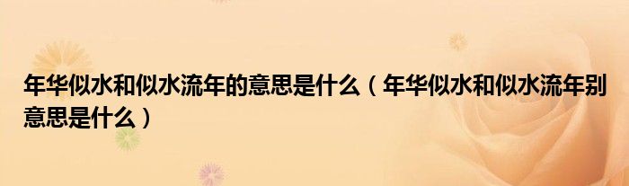 大家好,伊人来为大家解答以上问题。年华似水和似水流年的意思是什么,年华似水和似水流年别意思是什么很多人还不知道,现在让我们一起来看看吧!