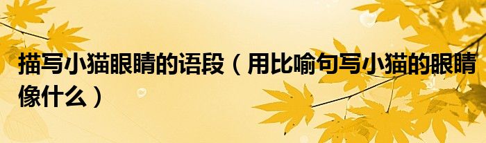 大家好,小育来为大家讲解下。描写小猫眼睛的语段,用比喻句写小猫的眼睛像什么很多人还不知道,现在让我们一起来看看吧!