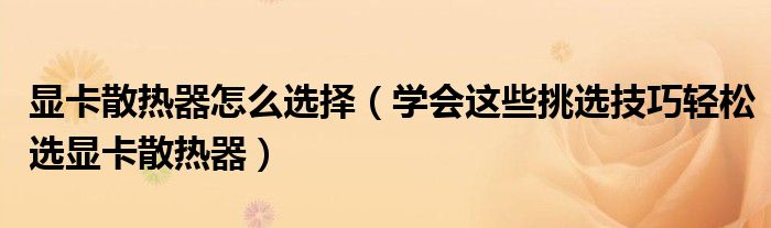 大家好,伊人来为大家解答以上问题。显卡散热器怎么选择,学会这些挑选技巧轻松选显卡散热器很多人还不知道,现在让我们一起来看看吧!