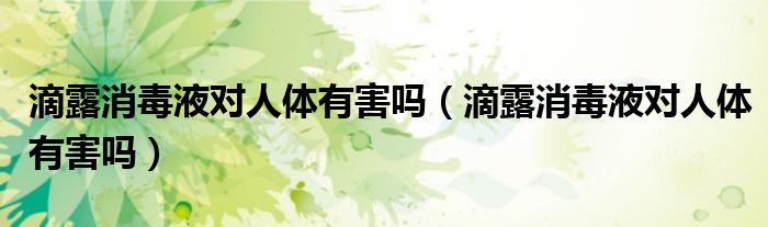 大家好,小育来为大家讲解下。滴露消毒液对人体有害吗,滴露消毒液对人体有害吗很多人还不知道,现在让我们一起来看看吧!