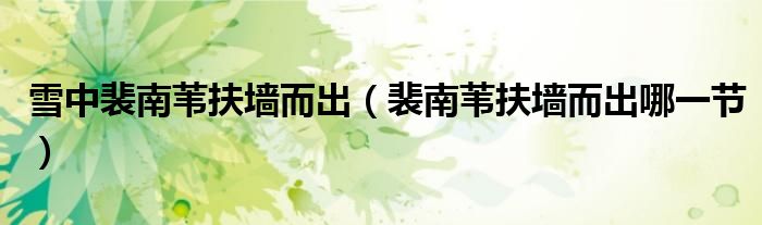 大家好,小育来为大家讲解下。雪中裴南苇扶墙而出,裴南苇扶墙而出哪一节很多人还不知道,现在让我们一起来看看吧!