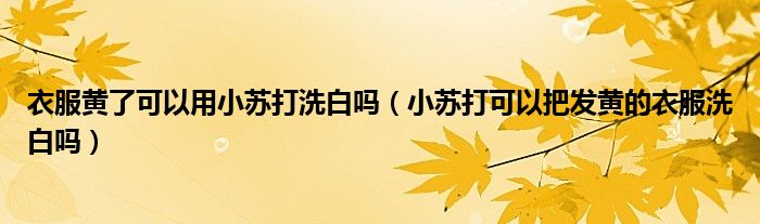 大家好,小育来为大家讲解下。衣服黄了可以用小苏打洗白吗,小苏打可以把发黄的衣服洗白吗很多人还不知道,现在让我们一起来看看吧!