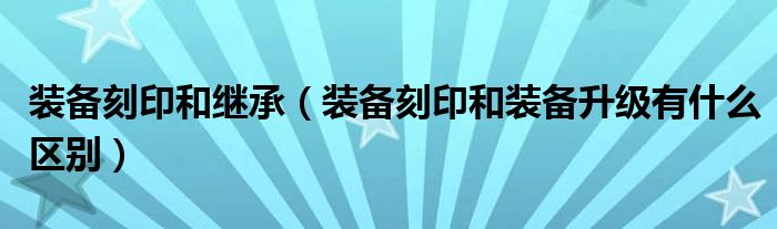 大家好,小育来为大家讲解下。装备刻印和继承,装备刻印和装备升级有什么区别很多人还不知道,现在让我们一起来看看吧!