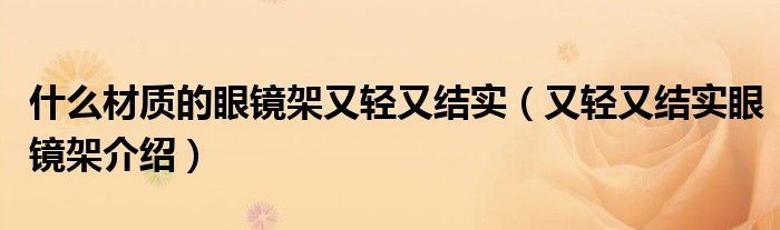 大家好,伊人来为大家解答以上问题。什么材质的眼镜架又轻又结实,又轻又结实眼镜架介绍很多人还不知道,现在让我们一起来看看吧!