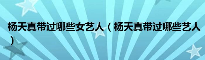 大家好,小育来为大家讲解下。杨天真带过哪些女艺人,杨天真带过哪些艺人很多人还不知道,现在让我们一起来看看吧!