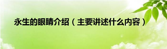 大家好,伊人来为大家解答以上问题。永生的眼睛介绍,主要讲述什么内容很多人还不知道,现在让我们一起来看看吧!