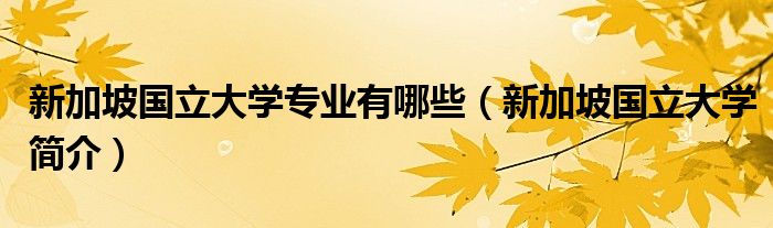 大家好,伊人来为大家解答以上问题。新加坡国立大学专业有哪些,新加坡国立大学简介很多人还不知道,现在让我们一起来看看吧!