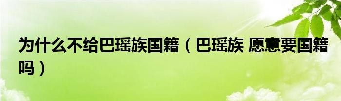 大家好,小育来为大家讲解下。为什么不给巴瑶族国籍,巴瑶族 愿意要国籍吗很多人还不知道,现在让我们一起来看看吧!