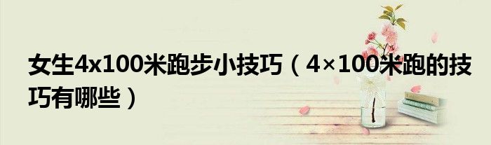 大家好,伊人来为大家解答以上问题。女生4x100米跑步小技巧,4×100米跑的技巧有哪些很多人还不知道,现在让我们一起来看看吧!