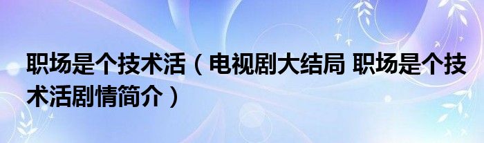 大家好,伊人来为大家解答以上问题。职场是个技术活,电视剧大结局 职场是个技术活剧情简介很多人还不知道,现在让我们一起来看看吧!