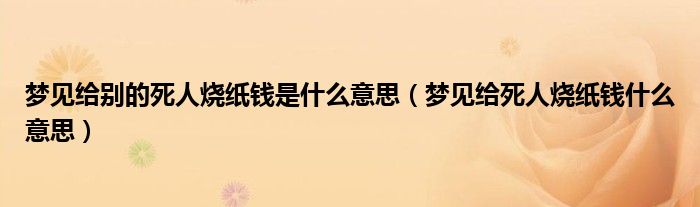 大家好,小育来为大家讲解下。梦见给别的死人烧纸钱是什么意思,梦见给死人烧纸钱什么意思很多人还不知道,现在让我们一起来看看吧!